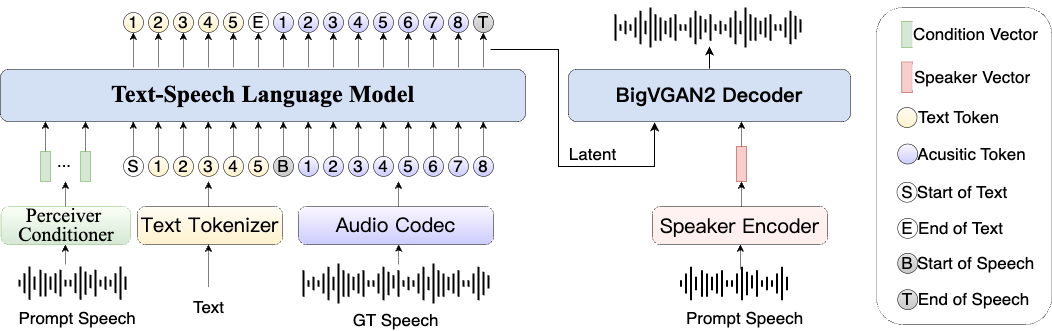 - IndexTTS incorporate a conformer conditioning encoder and a BigVGAN2-based speechcode decoder. This improves training stability, voice timbre similarity, and sound quality.